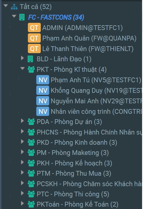 Tại cây đơn vị trên phần mềm người quản có thể thêm, sửa, xóa cây đơn vị theo cây đơn vị của công ty.   Khu vực là tên của công ty hoặc chi nhánh của công ty có biểu tượng   . Bộ phận là các phòng ban của công ty có biểu tượng