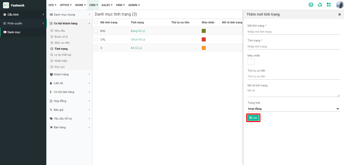 Bước 4 : Chọn Tình trạng, chọn Thêm mới.