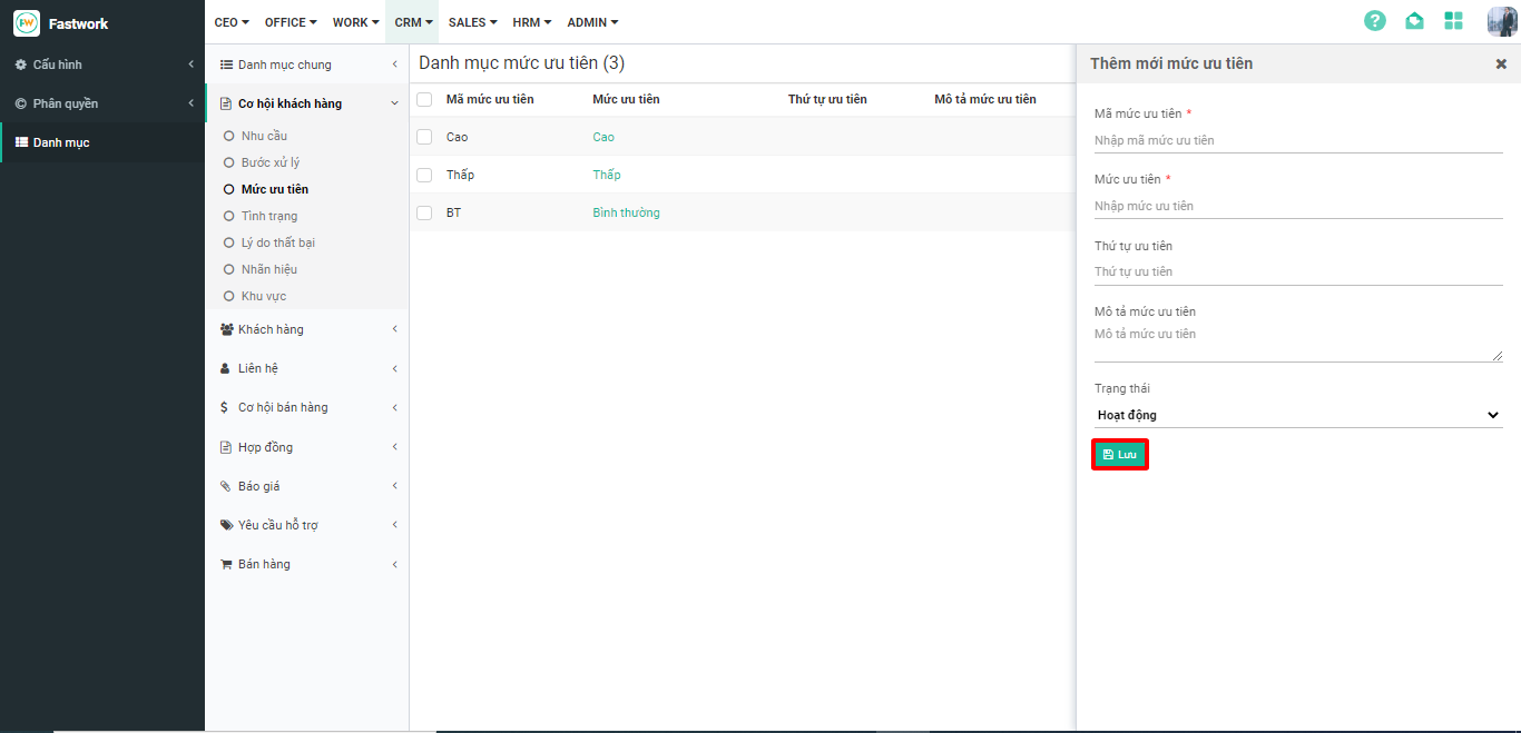 Bước 4 : Chọn Mức ưu tiên, chọn Thêm mới.