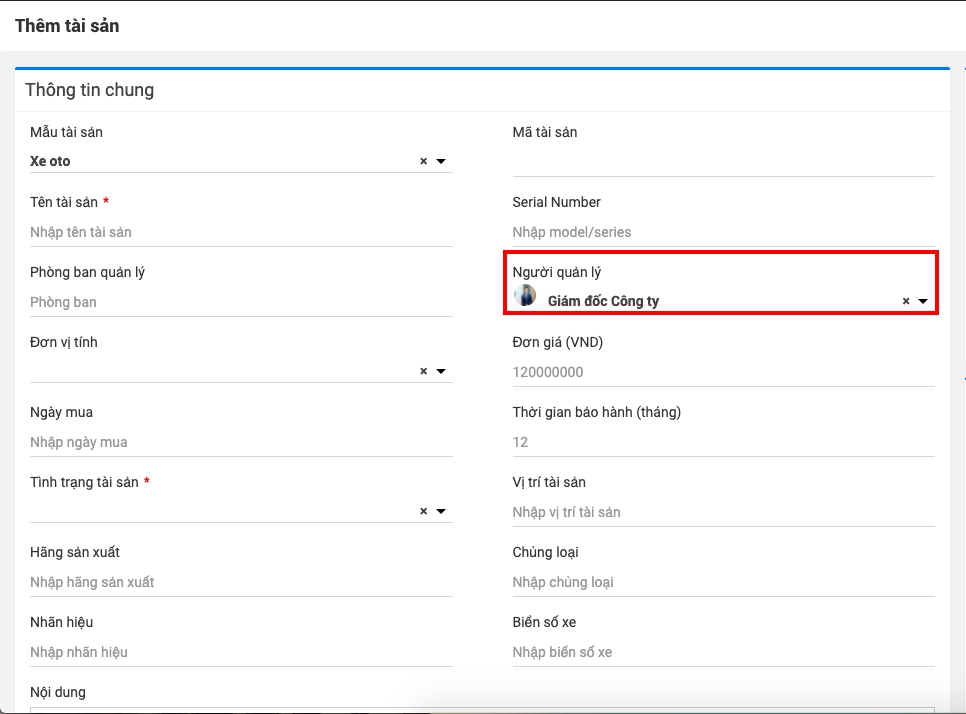 Bước 3: Nhập thông tin đầy đủ của tài sản