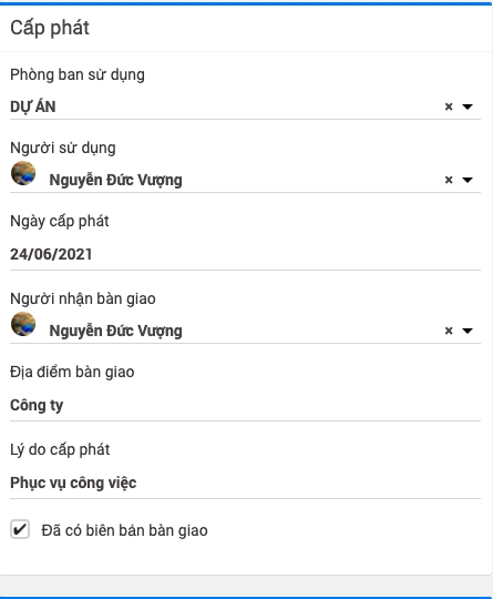 Phòng ban sử dụng: là bộ phận theo cây đơn vị