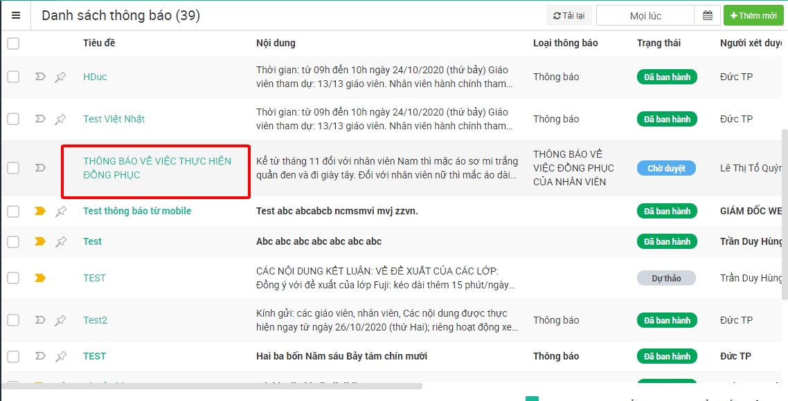 Bước 3: Kích chọn Thông báo cần ban hành