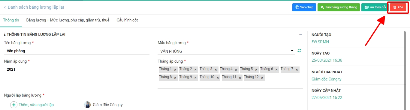 Bước 2: Chọn bảng lương lặp lại cần xóa