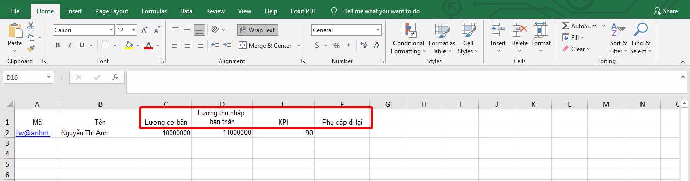Hướng dẫn nhập giá trị vào bảng lương tháng