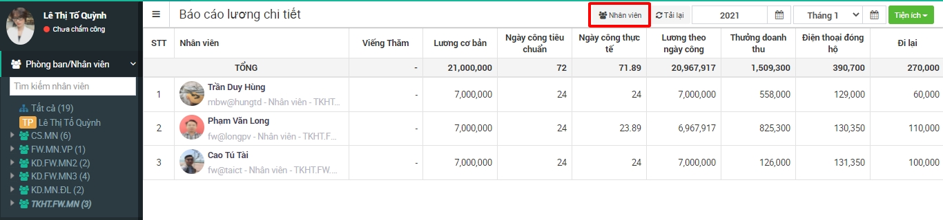 2. Xem báo cáo lương chi tiết theo từng phòng ban/bộ phận