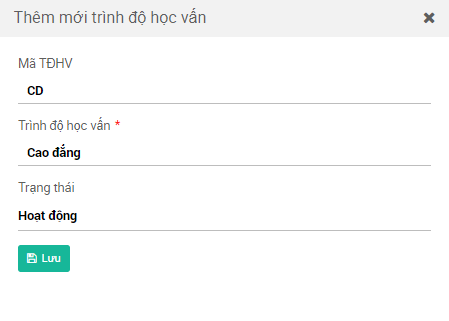 – Trình độ học vấn: Danh mục trình độ học vấn của nhân viên