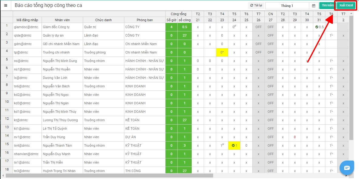 Bước 3: Để xuất dữ liệu anh/ chị chọn Xuất excel