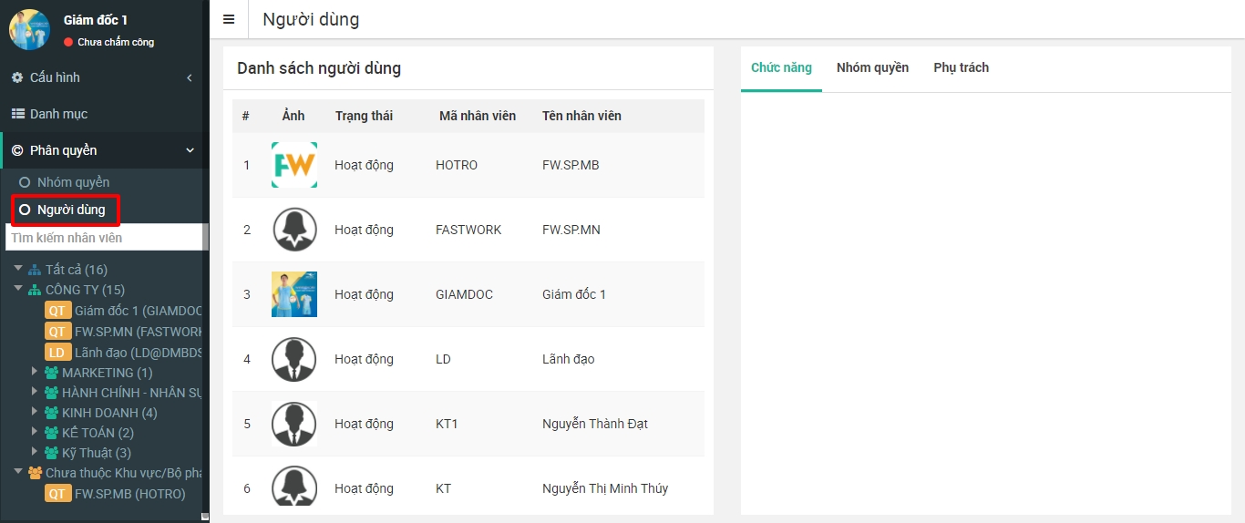 Bước 4: Chọn người dùng cần thêm quyền trên hệ thống. Sau đó kích chọn chức năng cho phép người dùng được phép truy cập, thao tác.