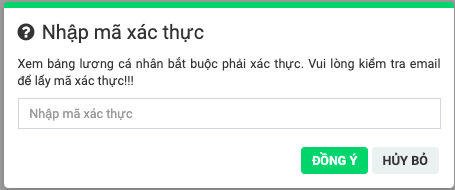 Yêu cầu xác thực khi xem bảng lương cá nhân: Khi nhân viên vào xem bảng lương cá nhân của mình có cần nhập mã xác thực hay không? ( để bảo mật bảng lương cá nhân mỗi nhân viên)