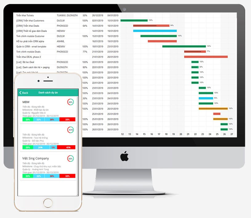 Cung cấp cho người quản lý một cái nhìn tổng quan ngay lập tức về dự án, các nhiệm vụ liên quan, và thời điểm mỗi nhiệm vụ phải được hoàn thành