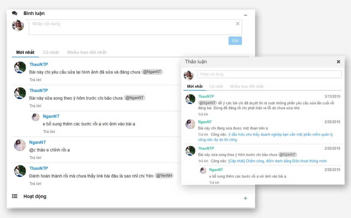 Cập nhật liên tục tất cả các hoạt động trên Task và Task list