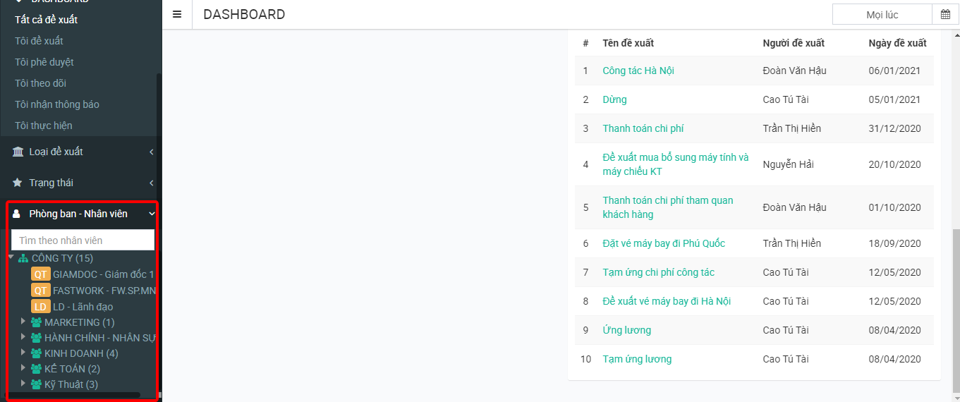 Hướng dẫn theo dõi, quản lý các đề xuất