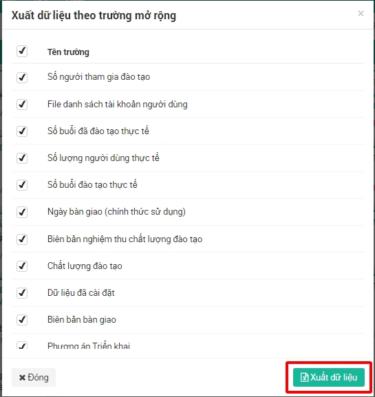 Bước 4: Check vào các trường mở rộng cần xuất thông tin -> sau đó chọn Xuất dữ liệu