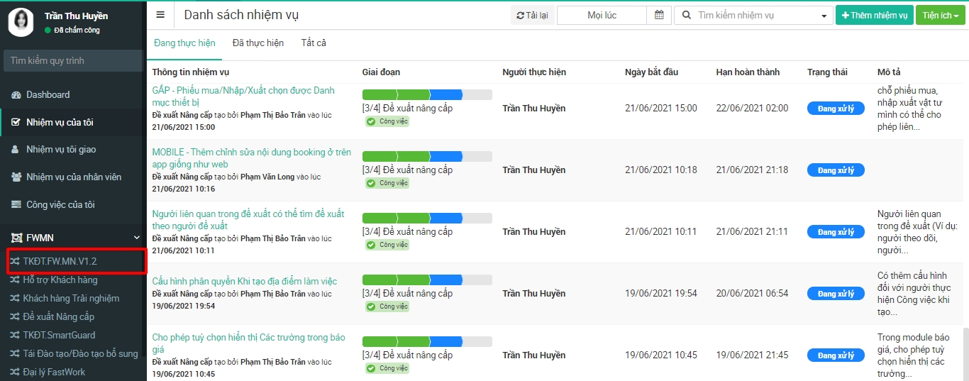 Bước 1: Chọn Quy trình công việc cần chỉnh sửa trường tùy chỉnh