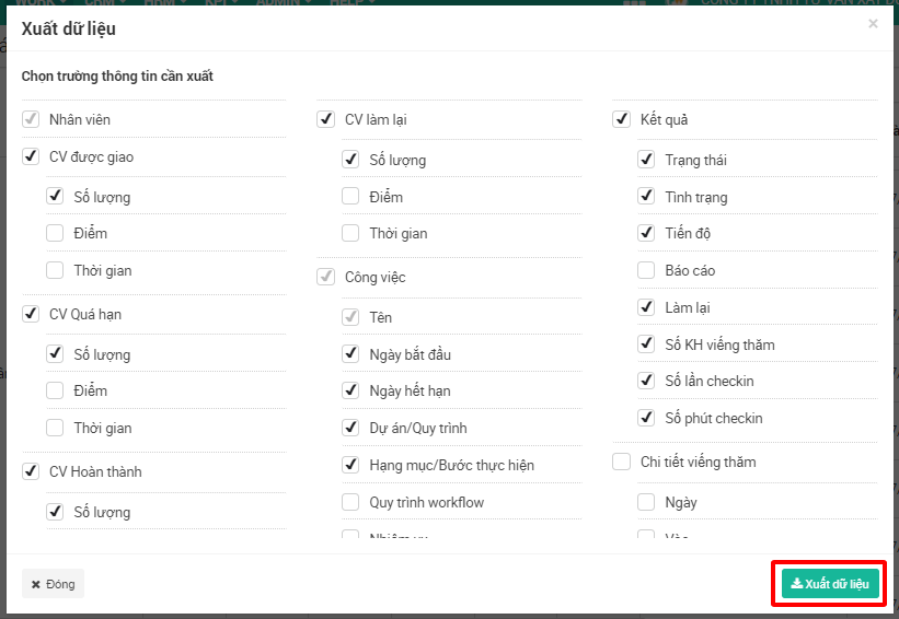 1.2. Hướng dẫn xuất excel báo cáo công việc